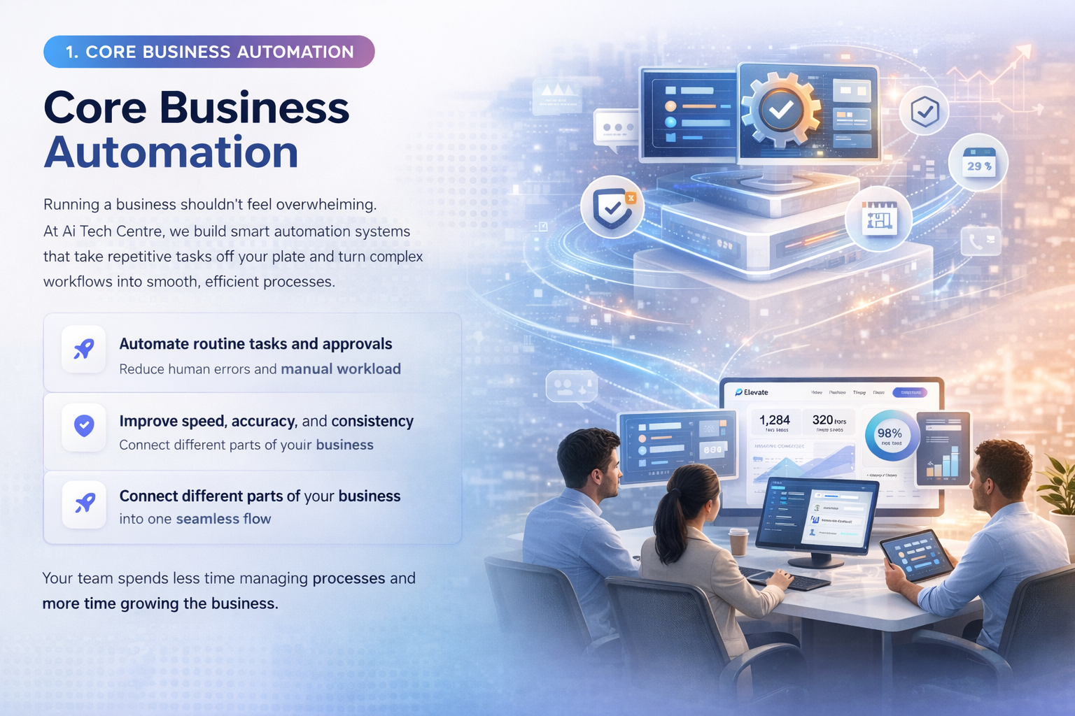 We believe the future of business is intelligent, automated, and deeply connected. At AI Tech Centre, our mission is to make that future accessible; giving businesses of all sizes the tools they need to operate smarter, scale faster, and stay ahead.
