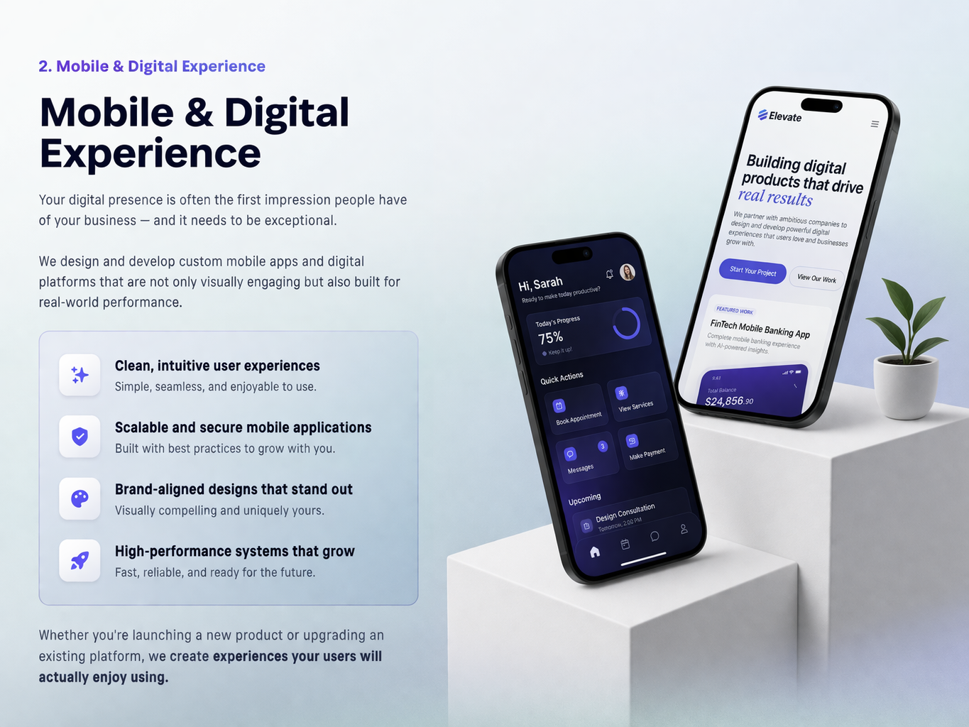 We specialize in custom mobile and web app designs and development, delivering tailored solutions that align with your brand and user needs.